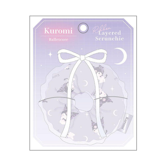 SANRIO JP Ribbon Layered Ribbon Scrunchie-Kuromi